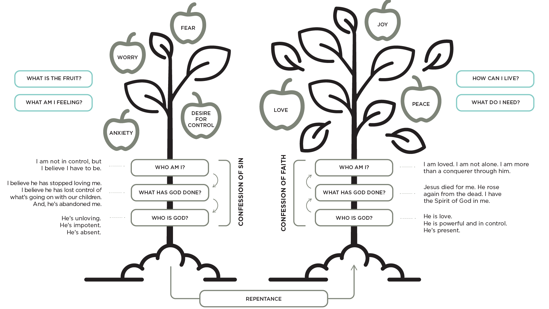 Once you trace the fruit to the root, invite the Spirit to reveal the truth of who God is and what he has done for you in Christ. Ask him to give you the ability to see and believe the truth, repent from lies or unbelief, and turn to God in faith through Jesus.